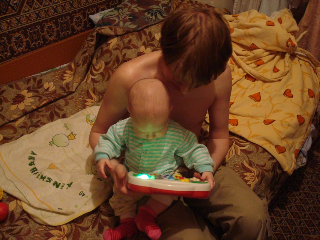 Купили ему еще, к слову, пианину. Пианина с лампочками, жужжать умеет. Ну и пианинить, само собой. Когда я был мелким, такого не было: