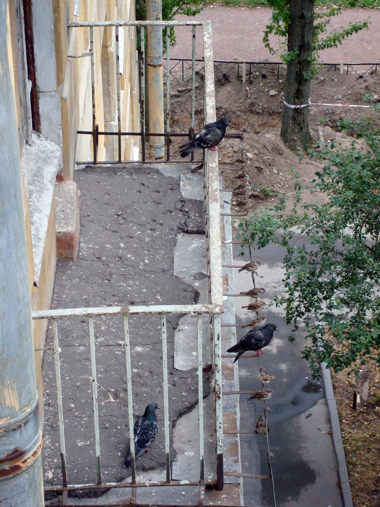 Еще устроил охоту на воробьев вчера. Фото-охоту - совсем как Шарик, друг Матроскина. Для начала запечатлел заседание Госдумы на соседском балконе: