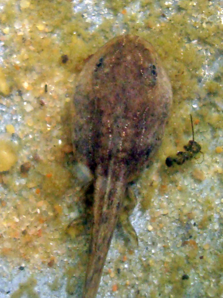 Помните, я писал про то, что мы наловили головастиков для выведения лягух в корыте? Так вот, не прошло и трех недель, как у головастиков выросли ножки!