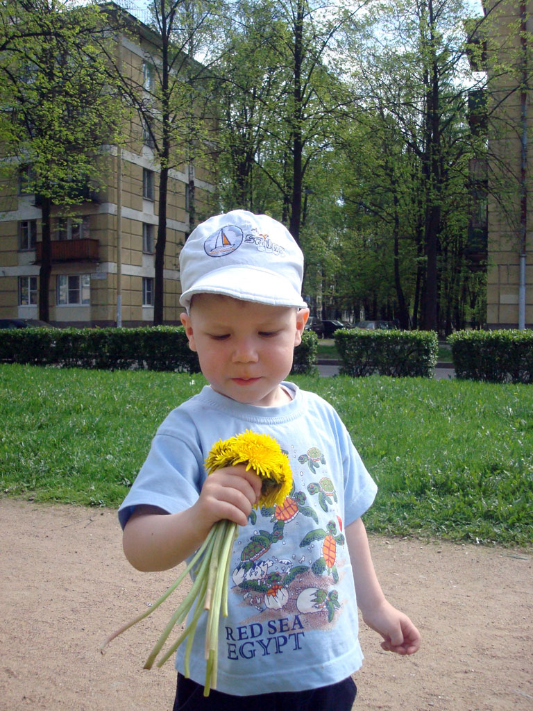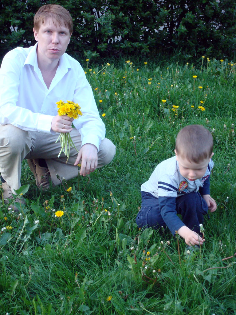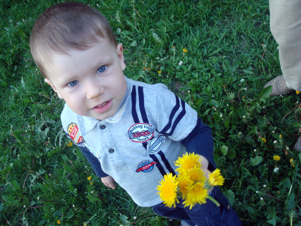 Одуванов возле ома наросла видимо-невидимо. Собираем их, мамке дарим. Мамка довольная.