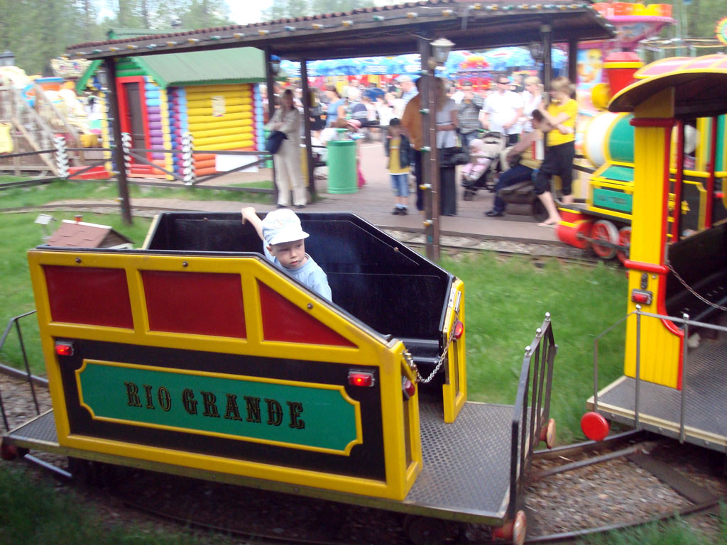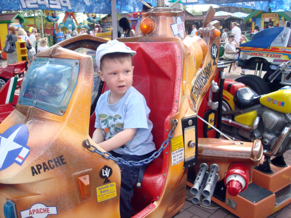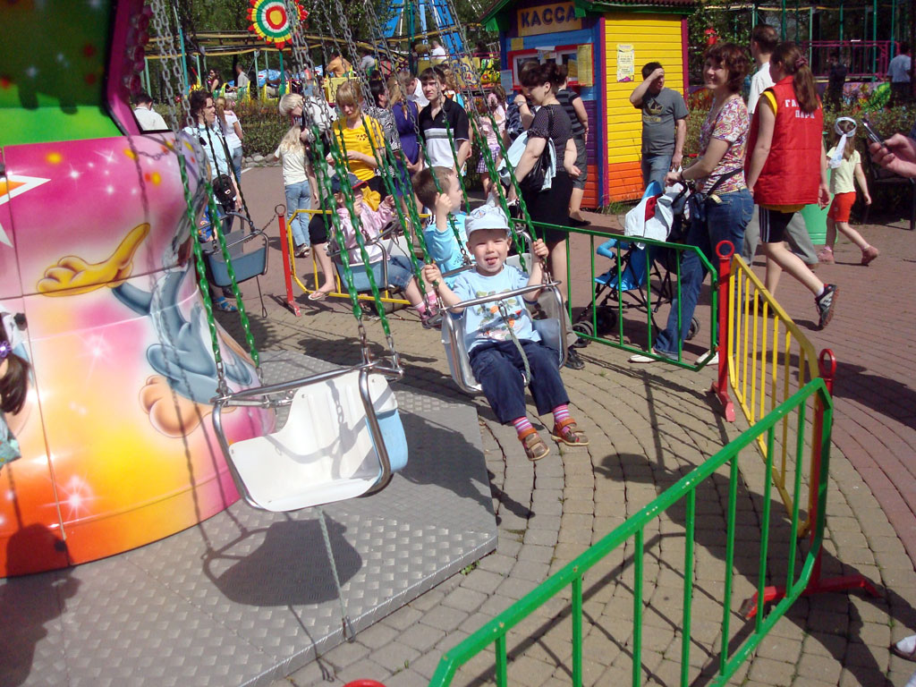 На каруселях детишек видимо-невидимо. Буквально не протолкнуться. Но программу откатали как надо. Начали, как водится, с гусеницы, продолжили вертолетом: