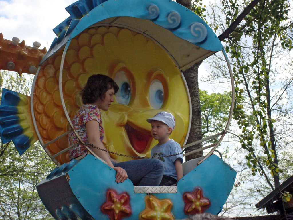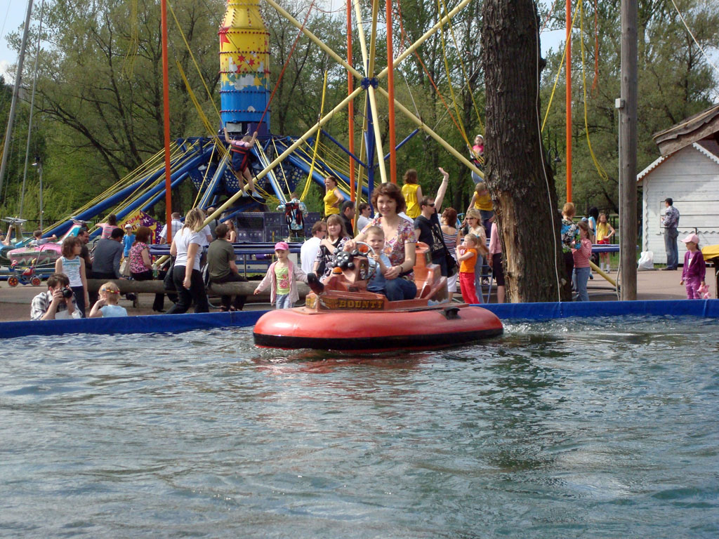 В связи с наступлением тепла открылись водные аттракционы - пиратский корабль, к примеру. Тут уж и мамка не удержалась, полезла в лодку.
