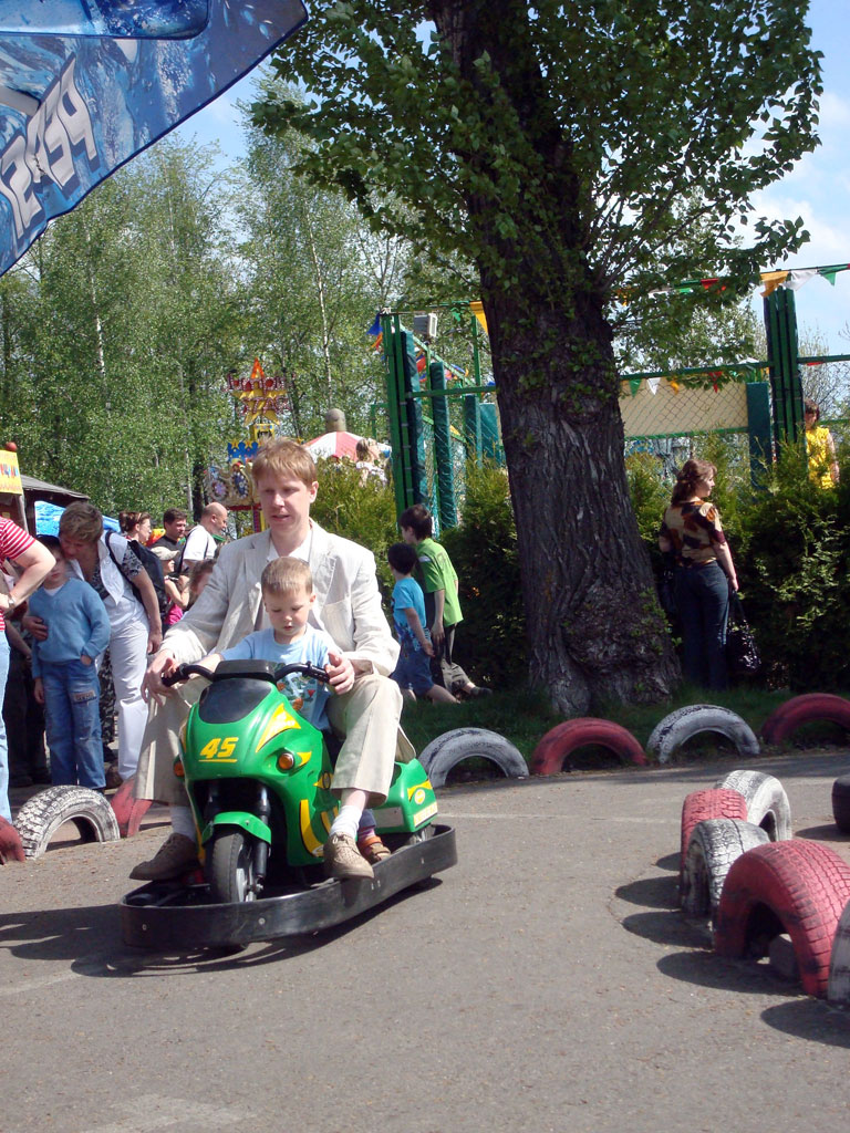 На мотоцикле сей раз почетно покатались - никто нас не обогнал и один круг из четырех Сережка сам рулил, я не помогал даже!