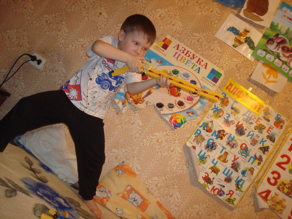 А вчера с Сергеем Васильевичем пополняли арсенал резинкового оружия. Сделали дробовичок, оченна удобный: