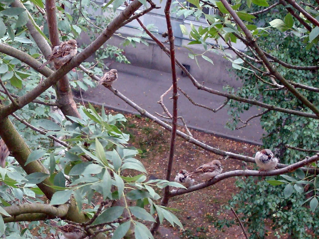 Еще устроил охоту на воробьев вчера. Фото-охоту - совсем как Шарик, друг Матроскина. Для начала запечатлел заседание Госдумы на соседском балконе: