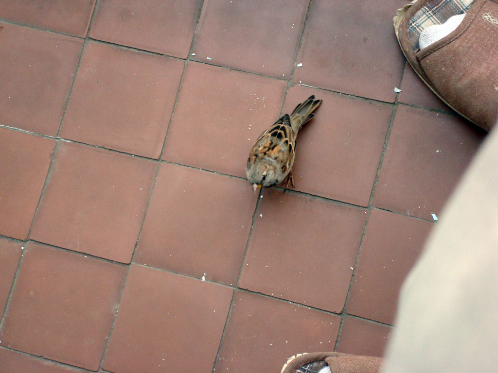 А один, особо наглый воробей, забежал ко мне в подпузье и жрал прямо с тапков: